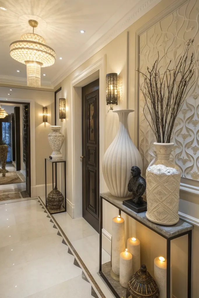 Even a tiny hallway can shine with the right lighting. A stunning chandelier or sculptural flush mount instantly adds elegance and character.