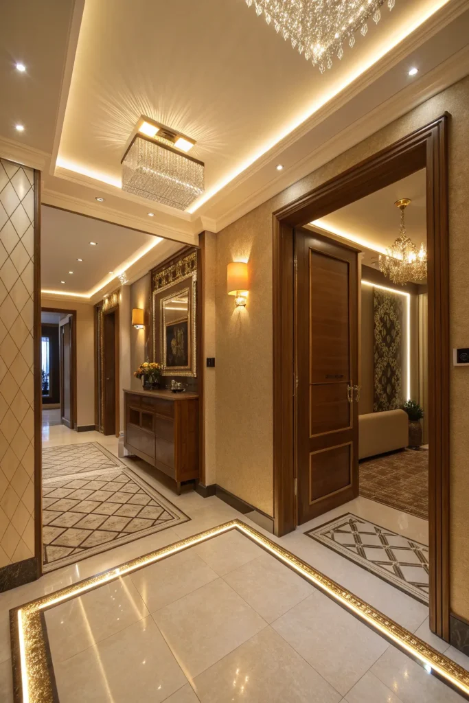Choose a warm bulb tone to create a cozy and welcoming glow. Lighting sets the mood and turns a simple hall into a standout design feature.