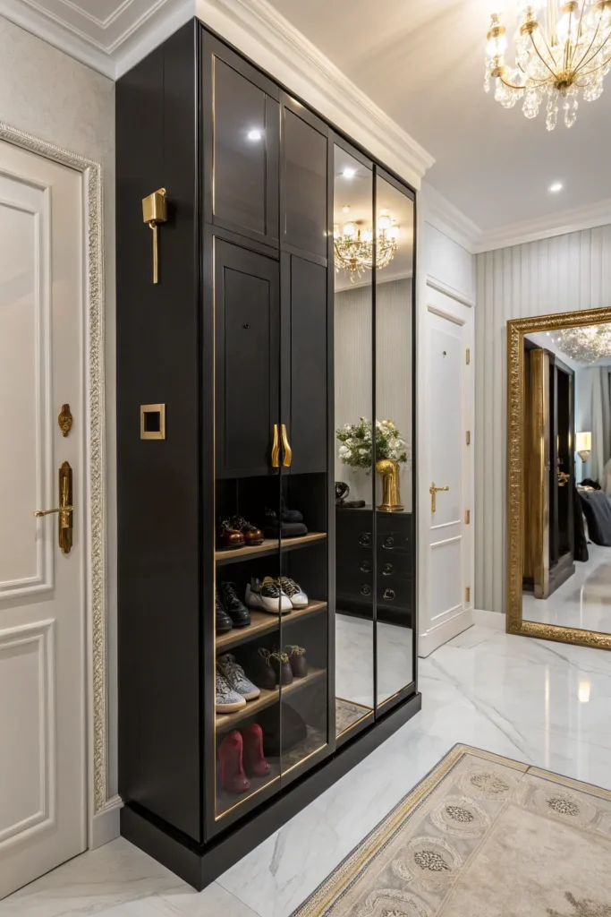 If shoes pile up near your doorway, a slim shoe cabinet is a game changer. It keeps the entry clean and clutter-free without taking up much floor space.