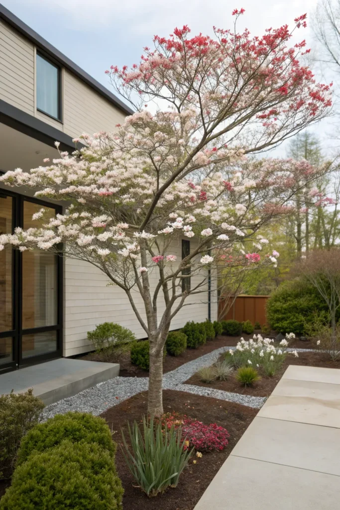 Known for its graceful blossoms and neat structure, the dogwood fits modern landscapes perfectly.