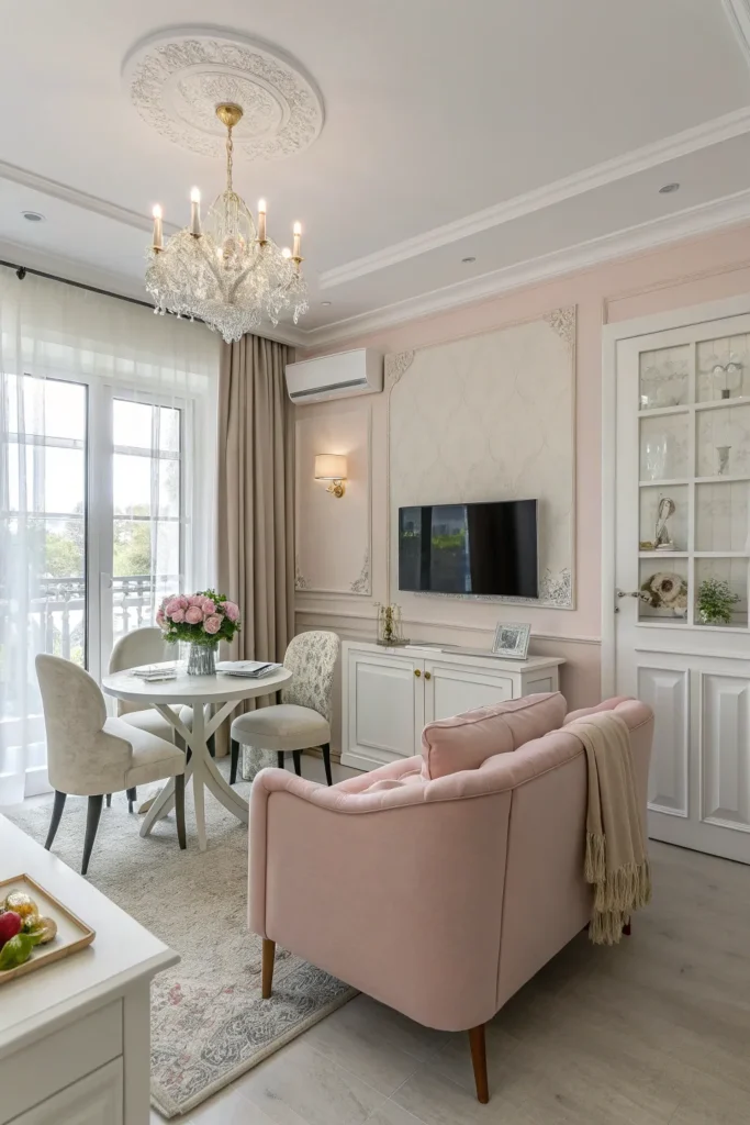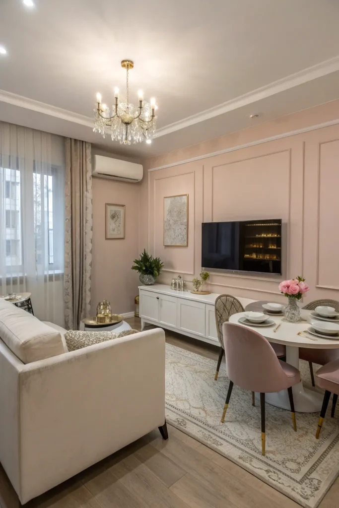 Pale neutrals, soft pastels, and white walls help visually enlarge a small room. These shades reflect light, making your combined living-dining area feel more open. Pair light-toned walls with furniture in similar hues for a calm, cohesive look that supports both activities.