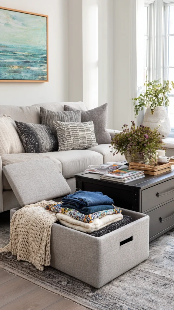 In a home without a basement, every piece of furniture should be evaluated not only for its primary function but for its storage potential, and any piece that offers only one without the other deserves scrutiny before it earns its place. An ottoman that opens to reveal interior storage for throws, board games, or remote controls. A bed frame with deep drawers built into its base.