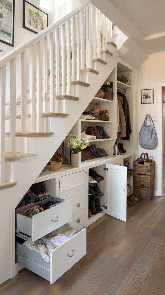 If your home has a staircase, the triangular void beneath it represents one of the most consistently underutilized storage opportunities in residential architecture. The space beneath a standard staircase, properly excavated and fitted, can accommodate a remarkable volume of stored items — in some homes, this single zone replaces the equivalent of a small closet.