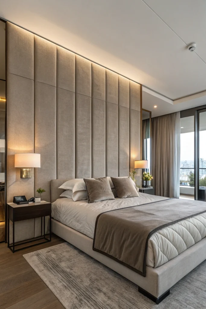 Modern designs favor soft neutrals, vertical channel tufting, or oversized geometric panels. Installed behind the bed or across a full feature wall, they double as a dramatic headboard alternative. Velvet, linen, or performance fabric options allow you to tailor the look while enjoying a noticeably quieter room.