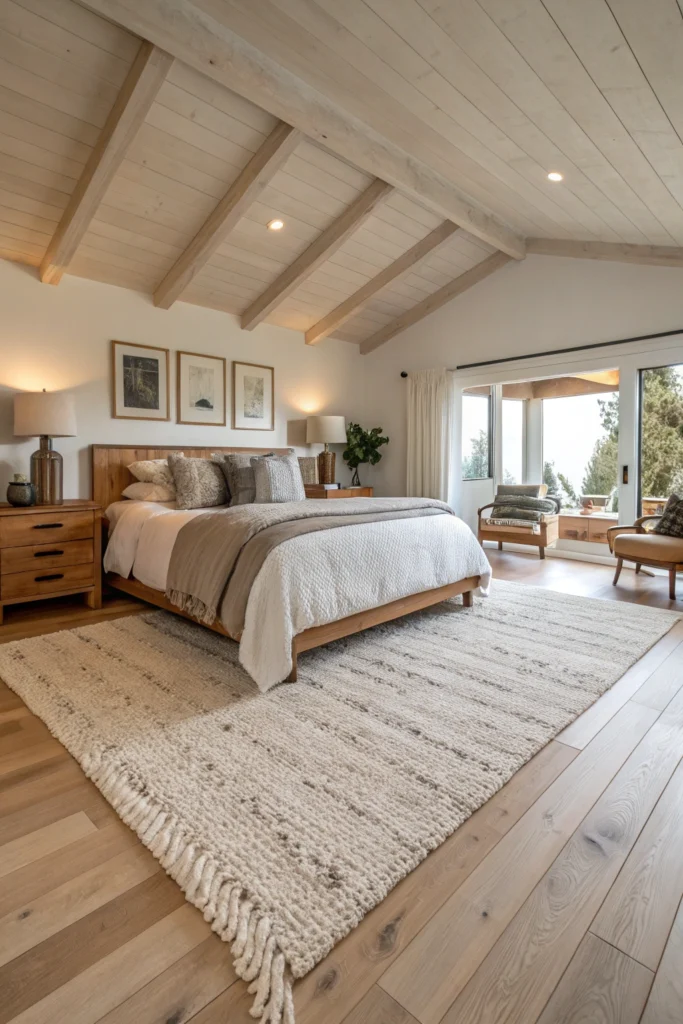 For a modern aesthetic, choose low-pile wool rugs, layered rugs with subtle patterns, or oversized neutral designs that anchor the bed. A quality rug pad underneath enhances both comfort and sound absorption while making the room feel more grounded and cozy.