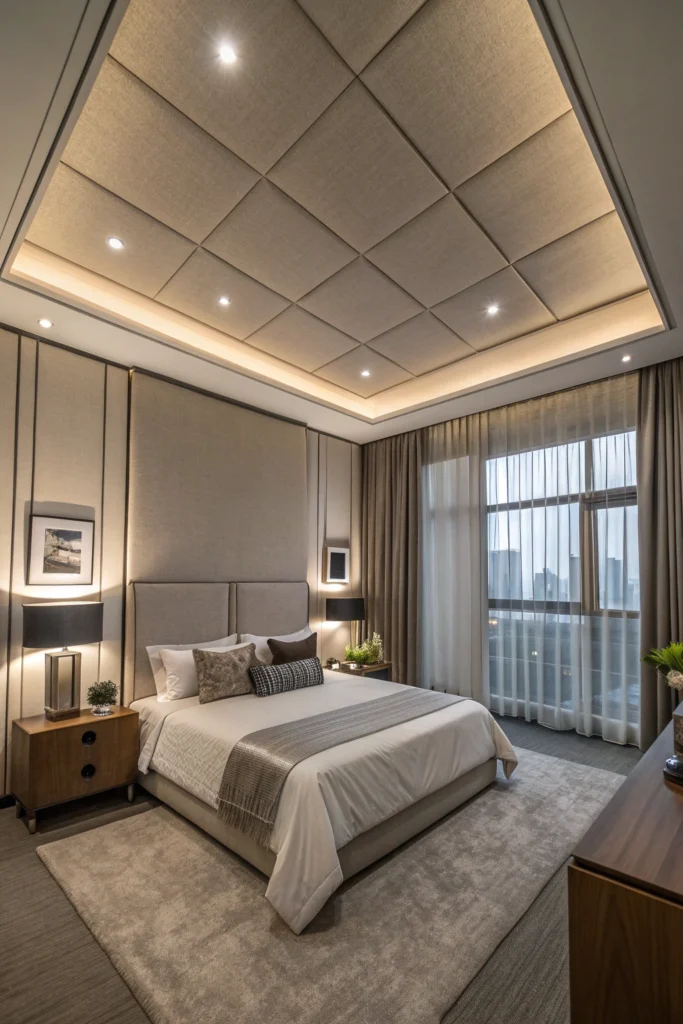 Noise doesn’t just come through walls—it travels through ceilings too. Acoustic ceiling treatments are increasingly popular in modern bedroom design, especially in city apartments or townhouses.