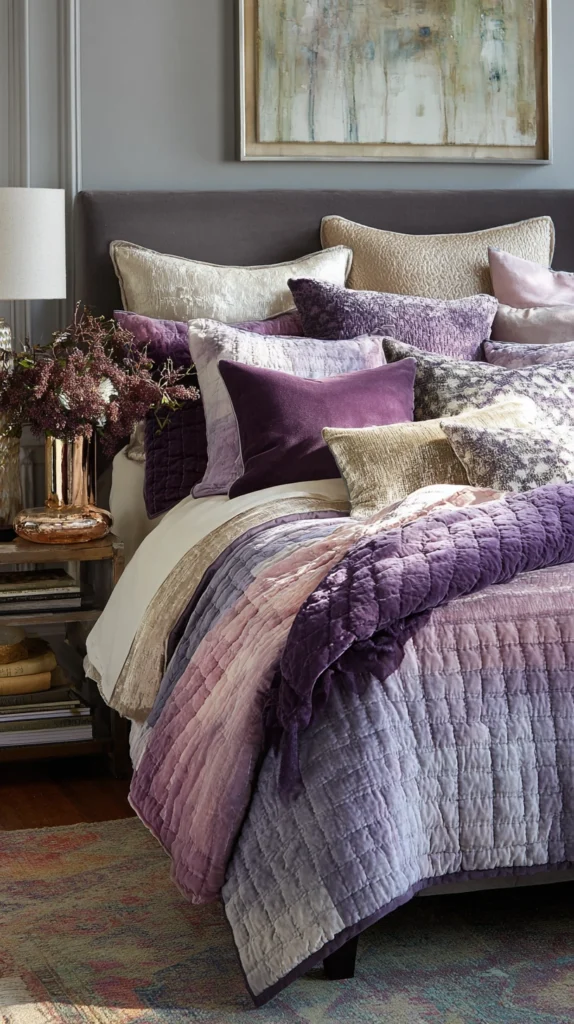11. Layered Purple and Lavender Bedding for Depth