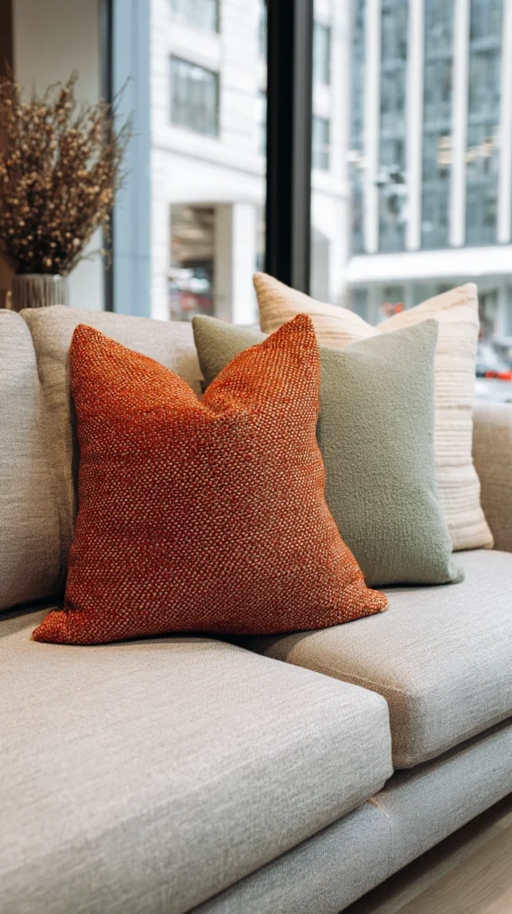 Look for textures like slubby linen, knitted cotton, or velvet to add tactile richness. Mix terracotta with dusty pink, sage green, and warm white for a spring palette that feels fresh yet grounded. Swap them out seasonally for a quick, affordable refresh.