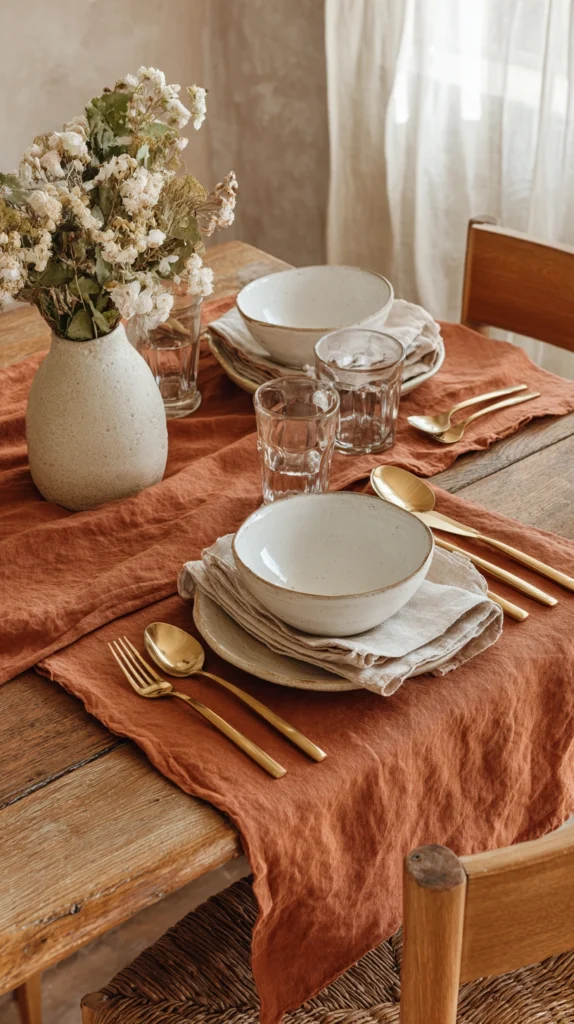 Spring is the perfect time to set a beautiful table, and terracotta-toned linens instantly elevate the dining experience. A warm clay-colored tablecloth or a set of terracotta linen napkins can transform even the most everyday meal into something that feels intentional and warm.