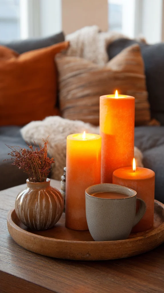 Candlelight and terracotta are natural partners. Look for pillar candles in terracotta, burnt sienna, and rust tones, and place them in simple clay or ceramic holders.
