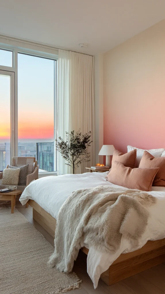 An ombre wallpaper — where color transitions gradually from one shade to another across the wall — creates an effect that is both subtle and visually striking. For spring, consider a gradient that moves from a warm terracotta or dusty blush at the base up through peach and soft cream at the top, mimicking a sunrise.