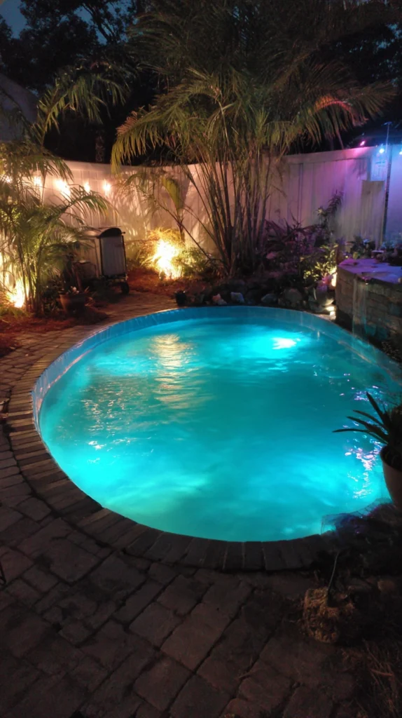 Pro Tip: Use warm white or soft blue LED colors rather than the full saturated spectrum. Warm white creates the most natural, flattering pool lighting that mimics candlelight reflected in water. Soft blue creates the most convincingly pool-like underwater effect. Saturated green, red, or purple lighting in a small pool looks slightly garish rather than atmospheric — subtlety creates the most genuinely beautiful evening result.