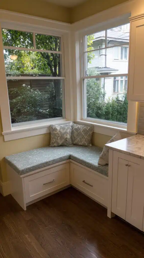 A corner bench — a built-in L-shaped seat fitted into a corner with storage drawers or cabinet doors below the seat surface — is the corner solution that combines the highest ratio of practical function with genuine visual appeal.