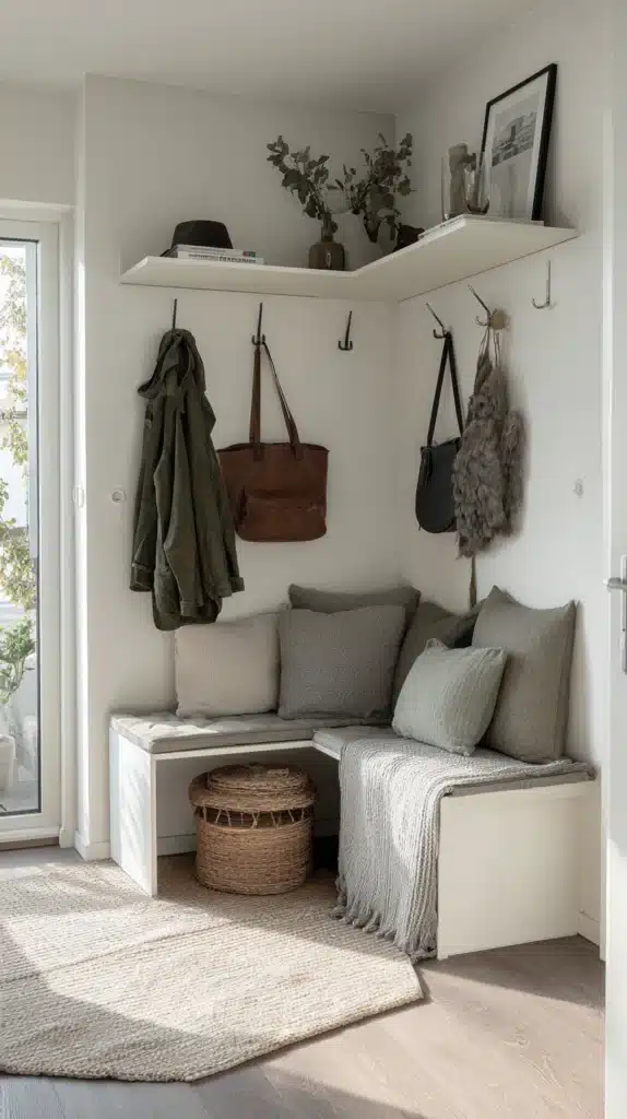 The entry corner — the corner nearest the front door or the transition point between entrance and main living space — is one of the most practically valuable corners in any home, and equipping it with a well-designed hook arrangement transforms it from a space where coats accumulate chaotically on a single hook to an organized and visually considered entry system.