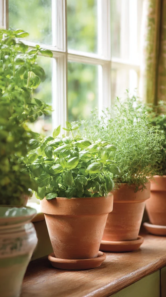2. Fresh Herbs in Simple Pots on the Windowsill