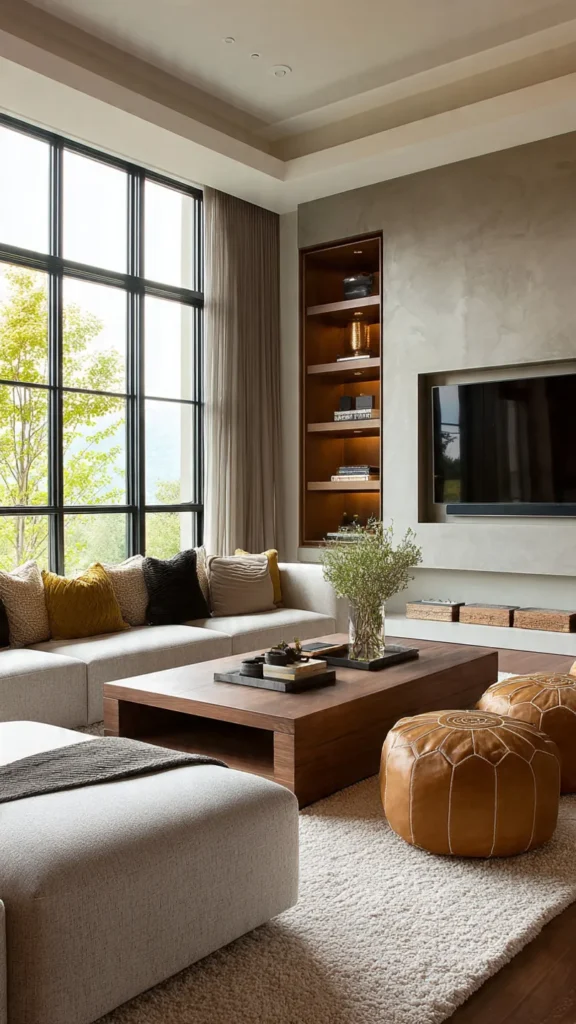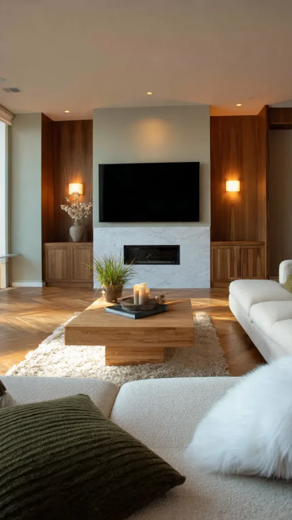 This makes the TV area feel cozy in the evening while enhancing the room’s overall mood. Modern living rooms rely on layered lighting rather than a single overhead source.