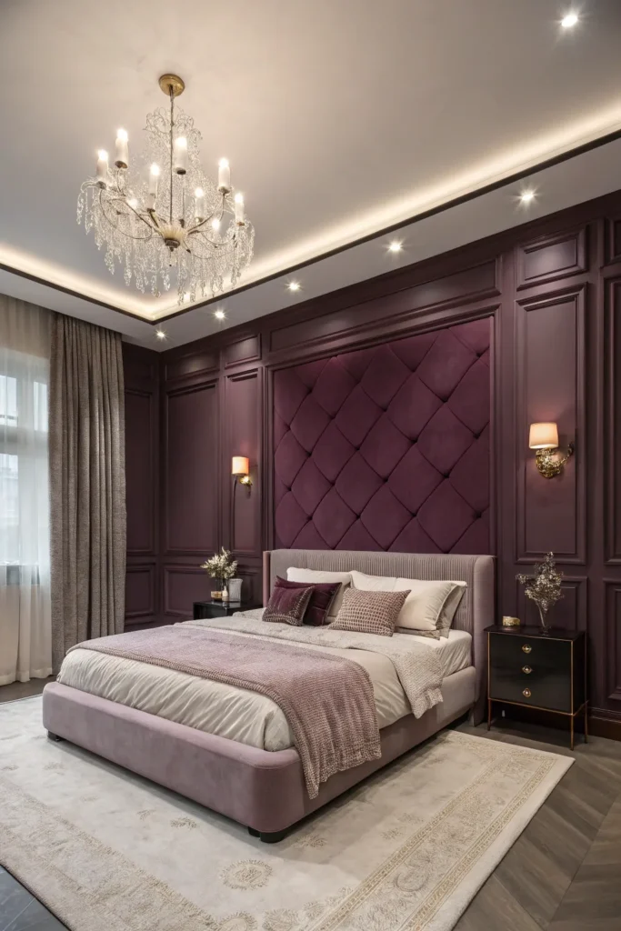 For a bold yet elegant bedroom, deep plum and pale blush make a stunning two-tone pair. The richness of plum adds drama, while blush softens the overall look.
