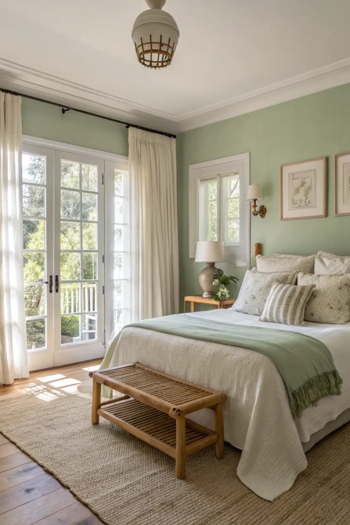 Sage green has become a favorite in designer interiors, and when paired with cream, it feels fresh yet timeless. This nature-inspired duo creates a relaxing bedroom that promotes rest and comfort.