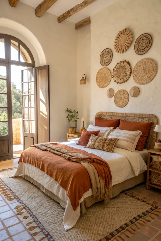 Terracotta brings warmth and character, while ivory adds lightness and softness. Together, they create a cozy, earthy bedroom with a designer edge. This pairing is especially appealing in bohemian, Mediterranean, or modern rustic interiors.
