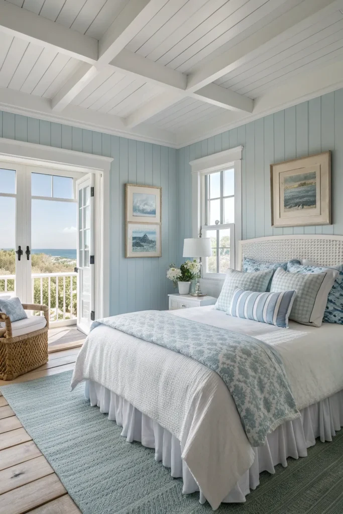 Use dusty blue on walls or built-ins and white for ceilings, trim, and bedding. The result is a light and breezy space that still feels thoughtfully designed. This combination works particularly well in coastal or Scandinavian-inspired bedrooms.
