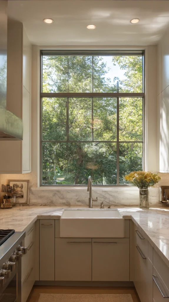 13. Add a Window Above the Sink for Natural Light and Garden Connection