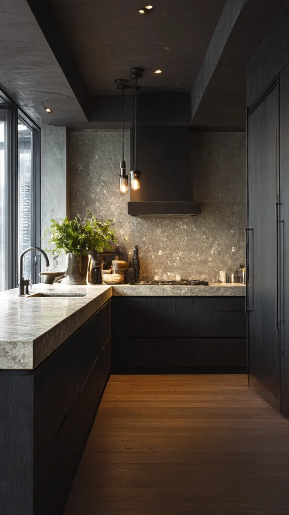 Each lighting layer operates independently, on its own switch or its own dimmer, allowing the kitchen’s atmosphere to shift from the bright functionality of a serious cooking session to the warm, directed intimacy of a casual evening at the island.