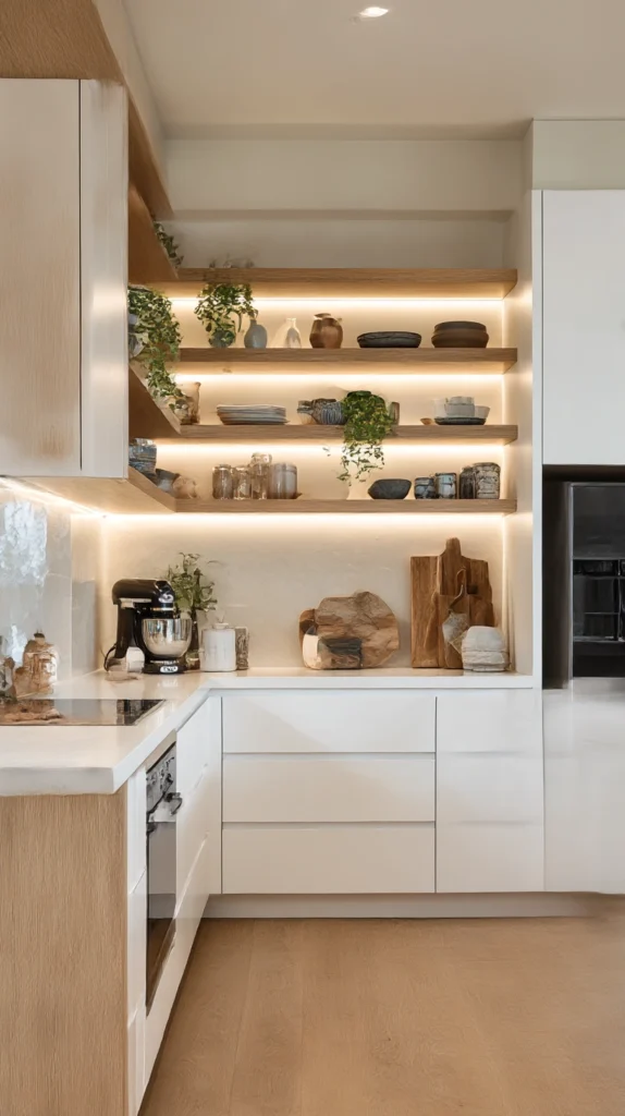 Style the open shelves with genuine care, maintain them with genuine discipline, and allow them to be the kitchen’s most personal and most visually engaging surface.