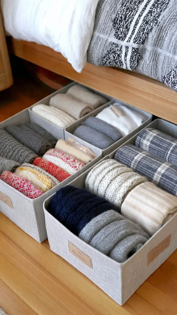 Using consistent containers and clearly defined categories keeps the system organized year-round. This method reduces clutter elsewhere in the bedroom and reinforces the idea that under-bed storage is a planned, functional extension of your living space.