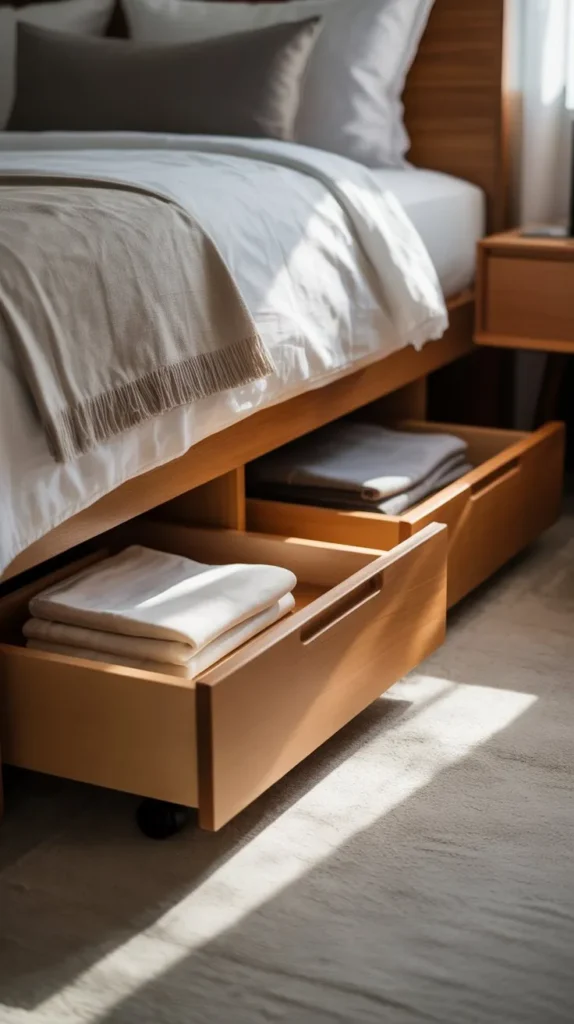 Especially in smaller bedrooms, apartments, or multipurpose spaces, under-bed storage can reduce clutter while maintaining a calm, curated look.