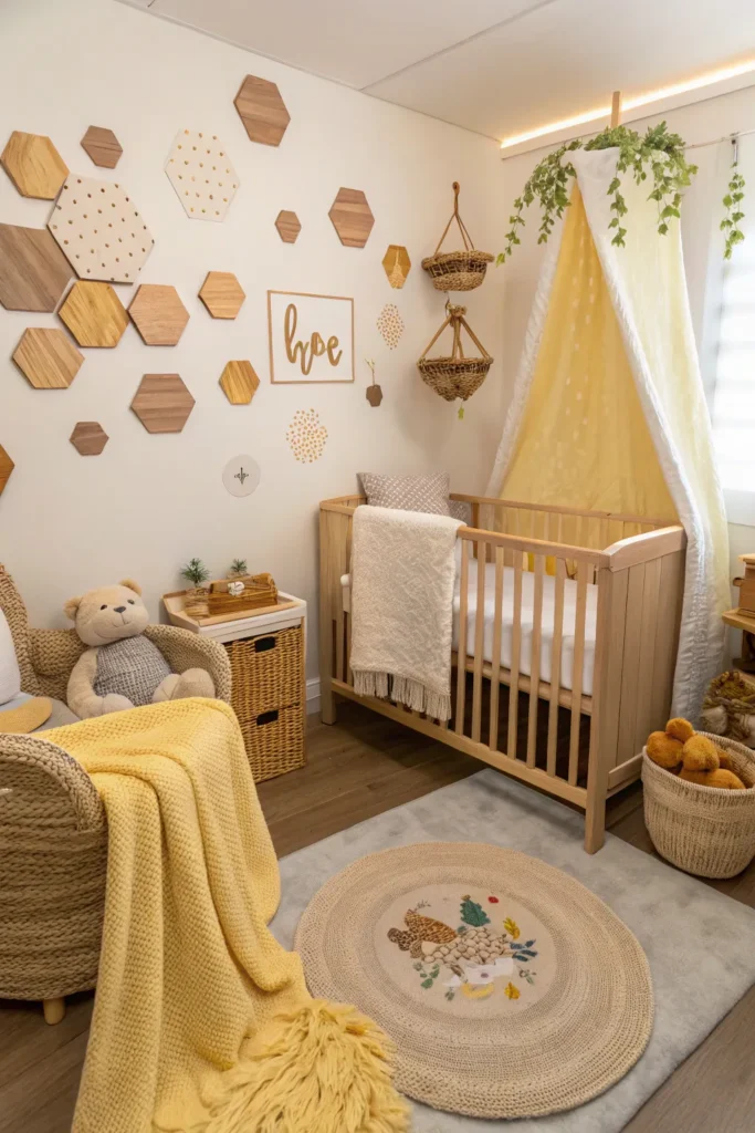 Incorporating natural textures helps bring the Hundred Acre Wood to life. Woven baskets, cotton rugs, linen curtains, and knitted blankets add depth and coziness. These textures soften the room visually and physically, creating a comfortable environment for your baby. Natural materials also contribute to the timeless appeal of the nursery.