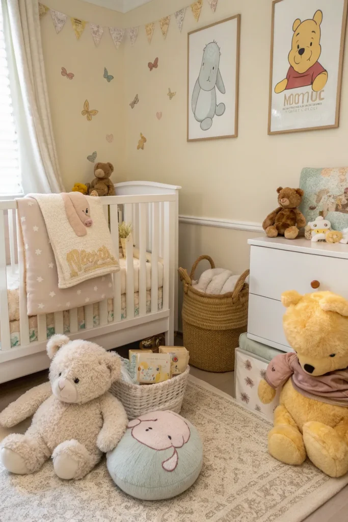 A timeless Winnie the Pooh nursery benefits from a simple, uncluttered layout. Arrange furniture with functionality in mind, leaving plenty of open space for movement and future play. Avoid overcrowding the room with decor and focus on a few meaningful pieces. A clean, thoughtful layout helps maintain a peaceful environment that supports your baby’s comfort and well-being.