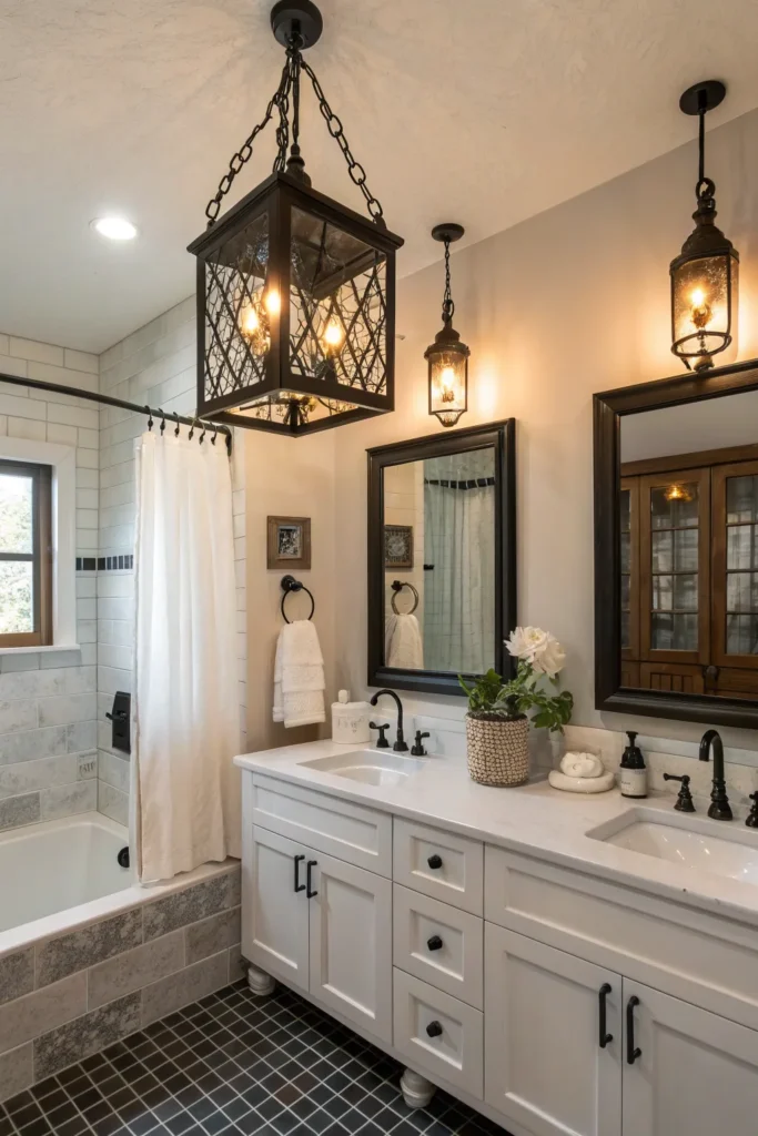 Switch basic lighting with hanging lanterns for an atmospheric glow.