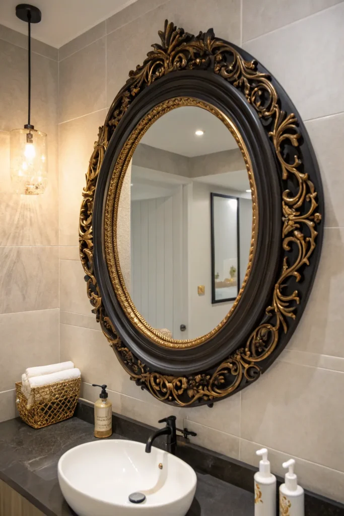 A mirror is central to any bathroom, but in a witchy theme, choose something dramatic.